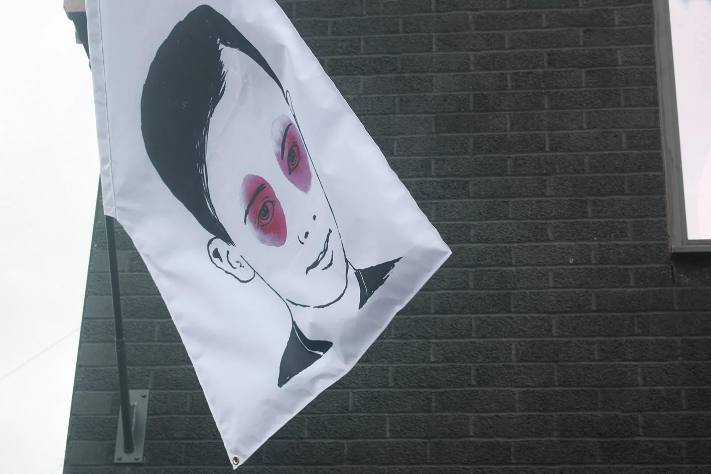 Twice a year the gallery commissions artists, from within and outside of the gallery stable, to create a banner which flys outside the gallery.ere